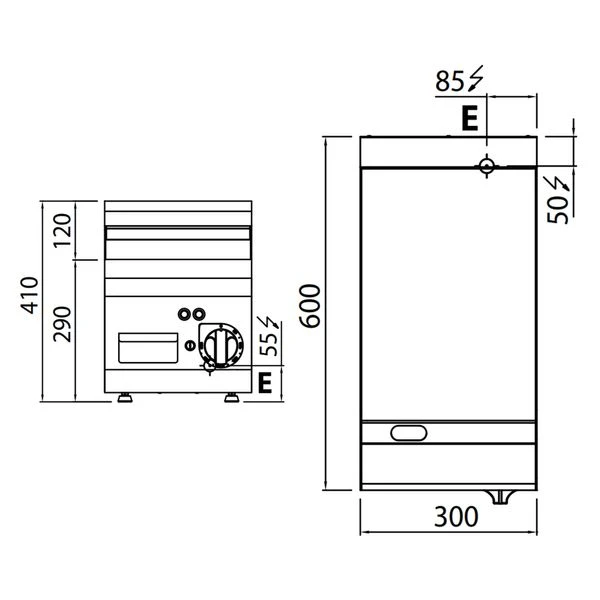 - Außenmaß B x T x H: 300 mm x 600 mm x 410 mm